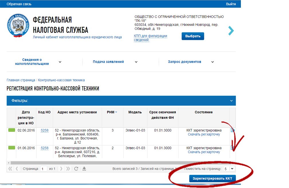 Нажмите кнопку «ЗАРЕГИСТРИРОВАТЬ ККТ»